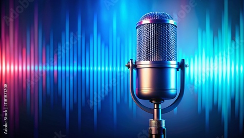 Podcast Banner: Blue Background with Microphone and Sound Wave