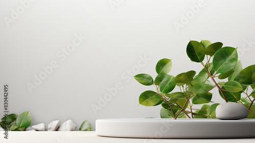 podium design for product display or product stand with leaf ornaments and minimalist background