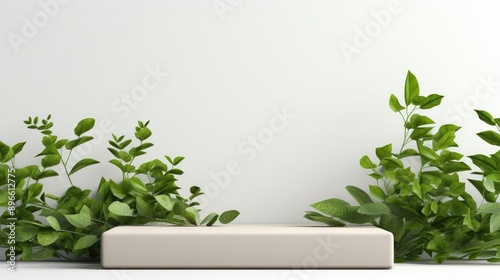 podium design for product display or product stand with leaf ornaments and minimalist background