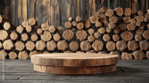 Podium on wooden pile background