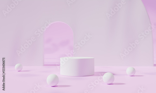 Podium with colorful background stand or podium pedestal on advertising display with blank backdrops. 3D rendering.