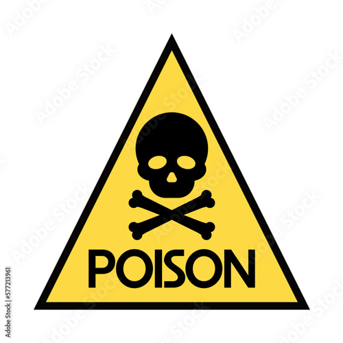 Poison warning. Yellow toxic sign isolated on white background. Flat vector illustration.