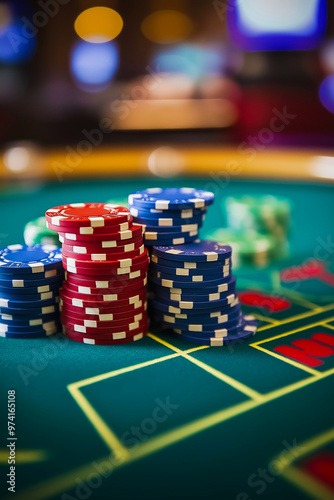 Poker chips on a casino table. Gambling chips. Gambling concept