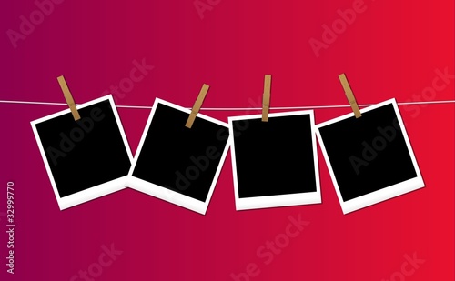 Polaroid appese su sfondo colorato