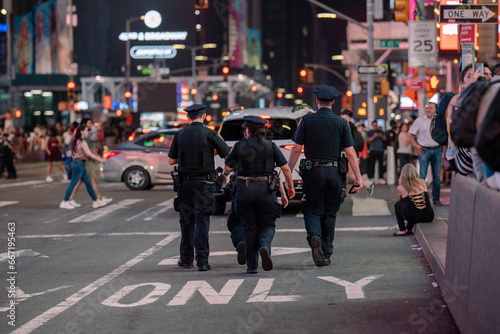Police patrol Time Square at night