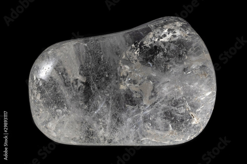 Polished clear quartz mineral from Brazil isolated on a pure black background.
