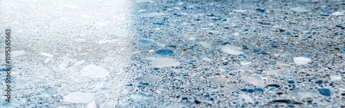 Polished concrete surface with icy blue pearl finish exhibits a sleek and stylish design aesthetic
