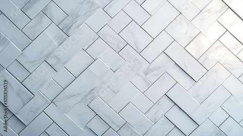 Polished, White Wall background with tiles. Semigloss, tile Wallpaper with Herringbone, 3D blocks. 3D Render