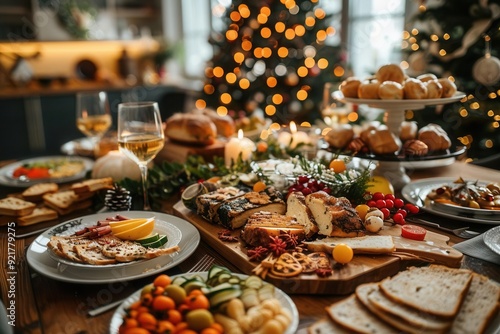 Polished wooden table ready for a festive celebration, with bright decorations and a joyous festival atmosphere