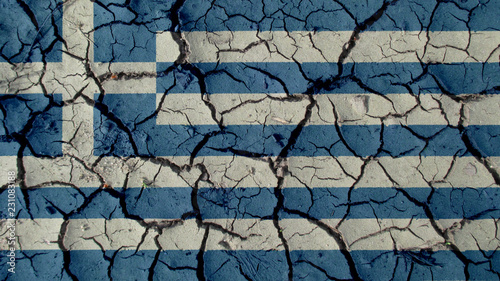 Political Crisis Or Environmental Concept: Mud Cracks With Greece Flag