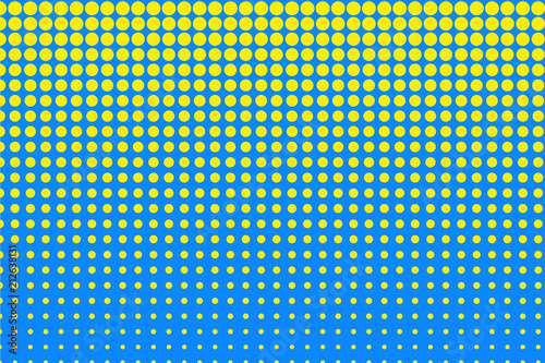 Polka dot halftone pattern. Yellow circles, points on blue background. Vector illustration