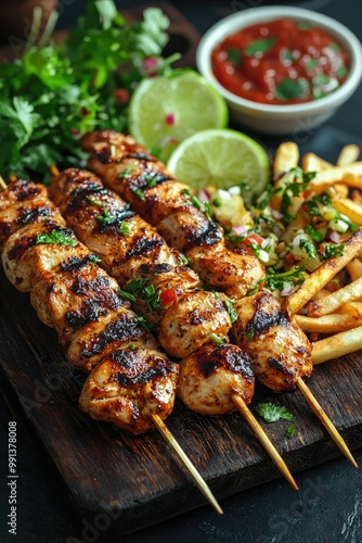 Pollo a la Parilla - Grilled chicken marinated with aji and spices, often served with fries and salad.