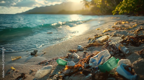 Pollution on a Tropical Beach: Plastic Waste Impacting Marine Ecosystems