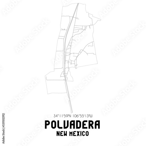 Polvadera New Mexico. US street map with black and white lines.