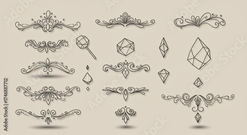 Polygon Hand-Drawn Vector Ornament Line Set Minimal Style