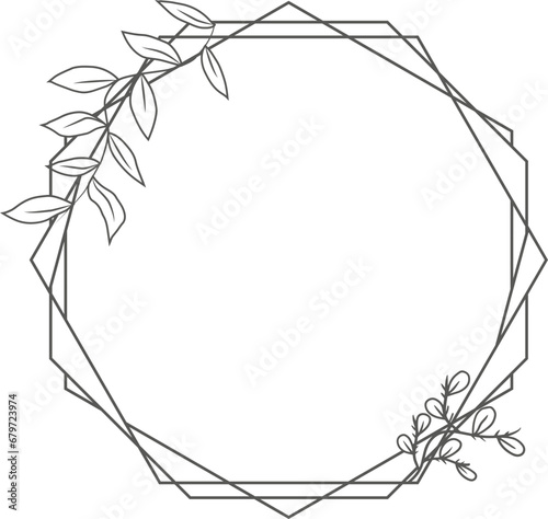 Polygonal floral leaf frame,decoation,wedding,invitation design element