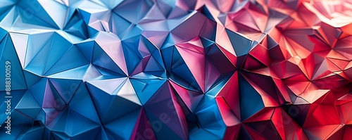 Polygonal shapes in shades of blue and red forming a geometric design. Stylish abstract wallpaper.