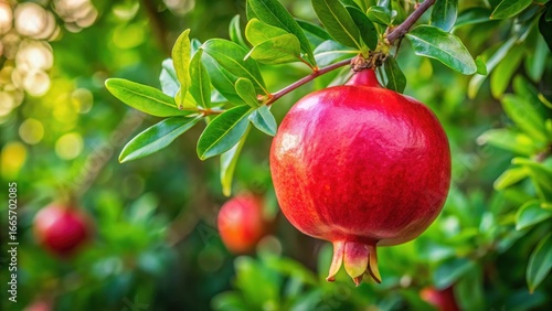 Pomegranate fruit close-up on tree branch