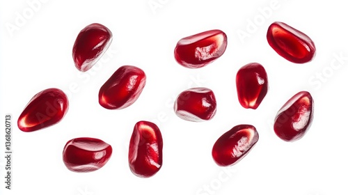 Pomegranate seeds isolated on a white background with a clipping path