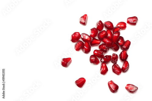 pomegranate seeds isolated on white background. top view. pomegranate berries.