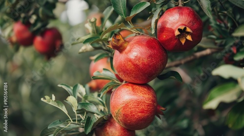 Pomegranate tree with fruits in the garden