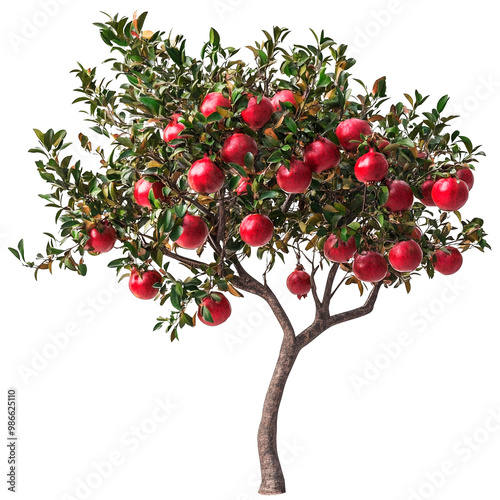 Pomegranate Tree with Ripe Fruits Isolated on Transparent Background, Symbol of Fertility and Abundance