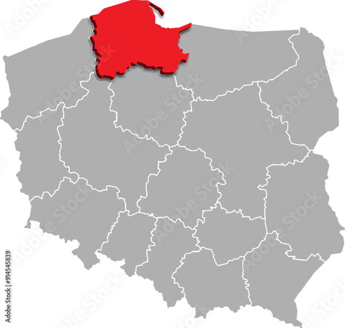 POMERANIAN PROVINCE of POLAND 3d isometric map WITH ADMINISTRATIVE DIVISIONS