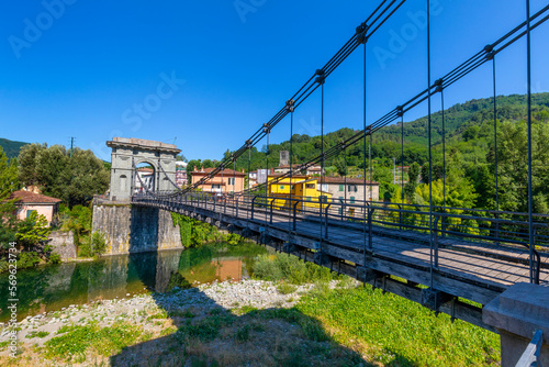 Ponte delle Catene (Bridge of Chains), suspension bridge, linking Fornoli and Chifenti, River Lima, Tuscany, Italy, Europe