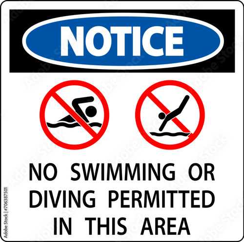 Pool Notice Sign No Swimming Or Diving Permitted In This Area