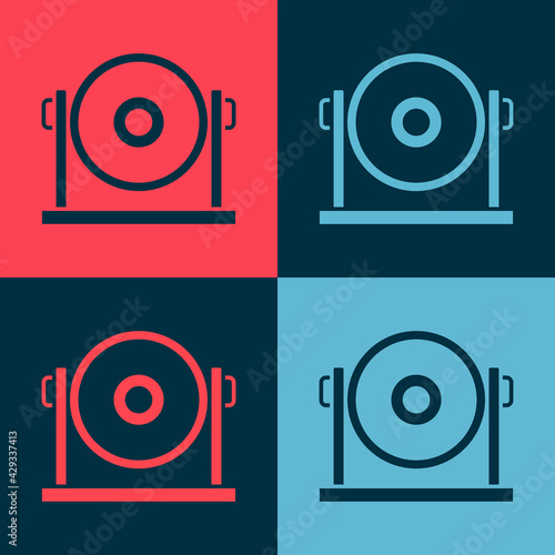 Pop art Gong musical percussion instrument circular metal disc icon isolated on color background. Vector