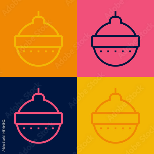 Pop art line Christmas ball icon isolated on color background. Merry Christmas and Happy New Year. Vector