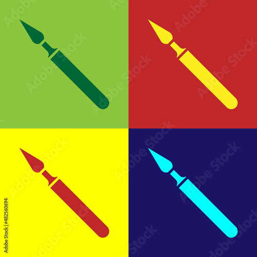 Pop art Medical surgery scalpel tool icon isolated on color background. Medical instrument. Vector Illustration