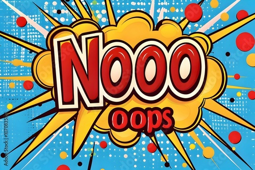 Pop art style Noo! text with comic book explosion background. Bold hues and halftone retro effects