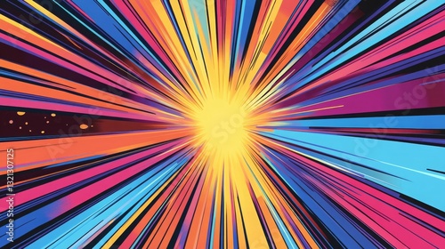 Pop art-style speed lines radiating to the center, creating a dynamic comic effect.