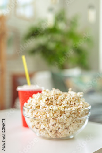 Popcorn in glass bowl