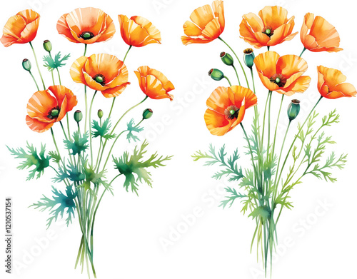 Poppy flower vector illustration, Hand drawn Poppy flower vector isolated on white background.