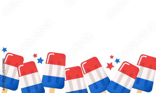 Popsicle and Star Background. Red, White and Blue Summer Vector for Wallpaper and Decoration. Popsicle Wallpaper for 4th of July