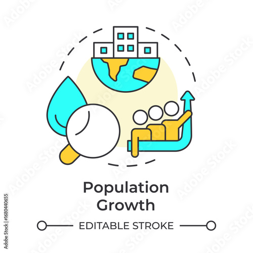 Population growth multi color concept icon. Increasing demand for freshwater. Cause of water scarcity. Round shape line illustration. Abstract idea. Graphic design. Easy to use in booklet