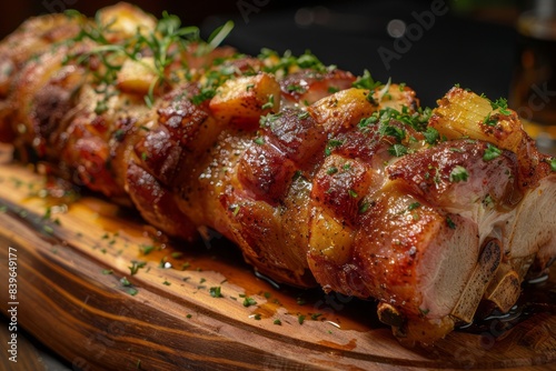 Pork knuckle served on a wooden plate