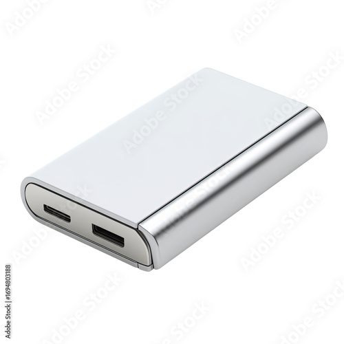 Portable power bank charging, studio shot, white background, tech