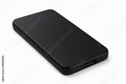 Portable SSD Drive on White Background, Sleek External Solid State Storage Device