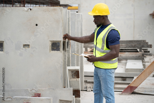 Portrait African engineer man or worker working with precast cement at precast cement outdoor factory
