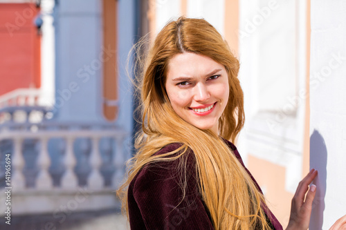 Portrait close up of young beautiful blonde woman