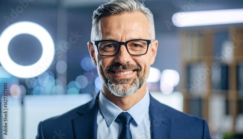 Portrait Confident Mature Businessman with Gray Hair in Business Attire