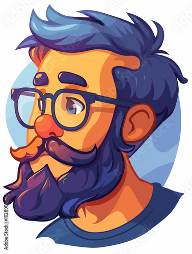 Portrait of a bearded man with glasses and mustache. Vector illustration.