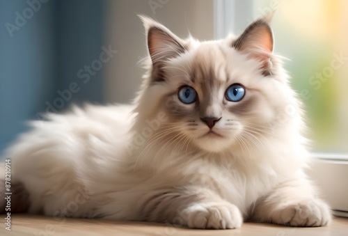 portrait of a beautiful domestic cat, purebred Ragdoll