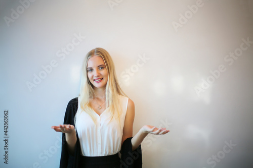 portrait of a beautiful fashion girl with blonde hair posed indoor.