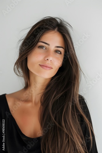 Portrait of a beautiful woman with luxurious straight hair on white background