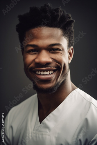 Portrait of a beautiful young african american male doctor smiling. Illustration. Generative AI