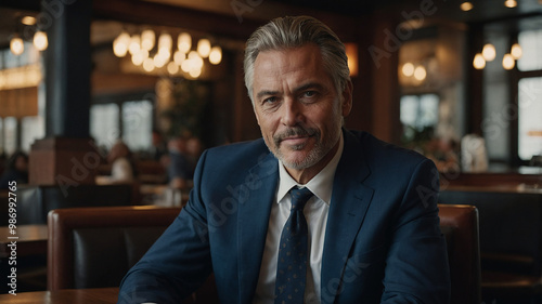 portrait of a businessman sitting in a restaurant waiting for a meeting with client or an investor